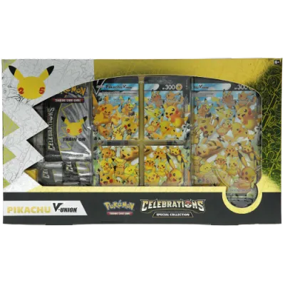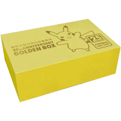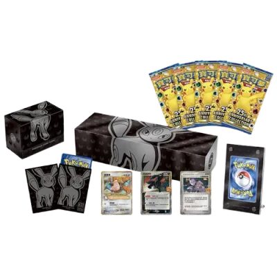 This box contains a curated collection from Pokémon TCG: 25th Anniversary Celebrations, featuring iconic reprints, classic artwork, and special chase cards that capture 25 years of Pokémon nostalgia.