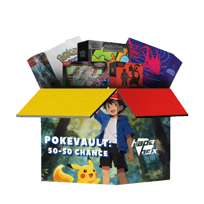 Flip the coin on greatness. We’ve loaded this box with the most iconic Pokémon TCG history. With a 50% chance to land a collectible worth more than the entry, the thrill of the hunt is real. Catch the ultra-rare 25th Anniversary packs or the heavy-hitting TAG TEAM displays.