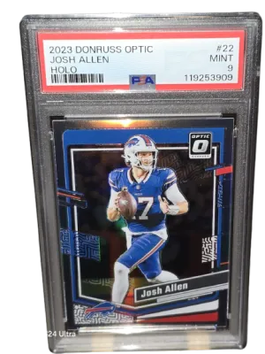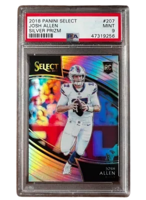 This box features a curated lineup of PSA-graded football cards, highlighted by standout names like Patrick Mahomes, Josh Allen, Justin Jefferson, and Justin Herbert.